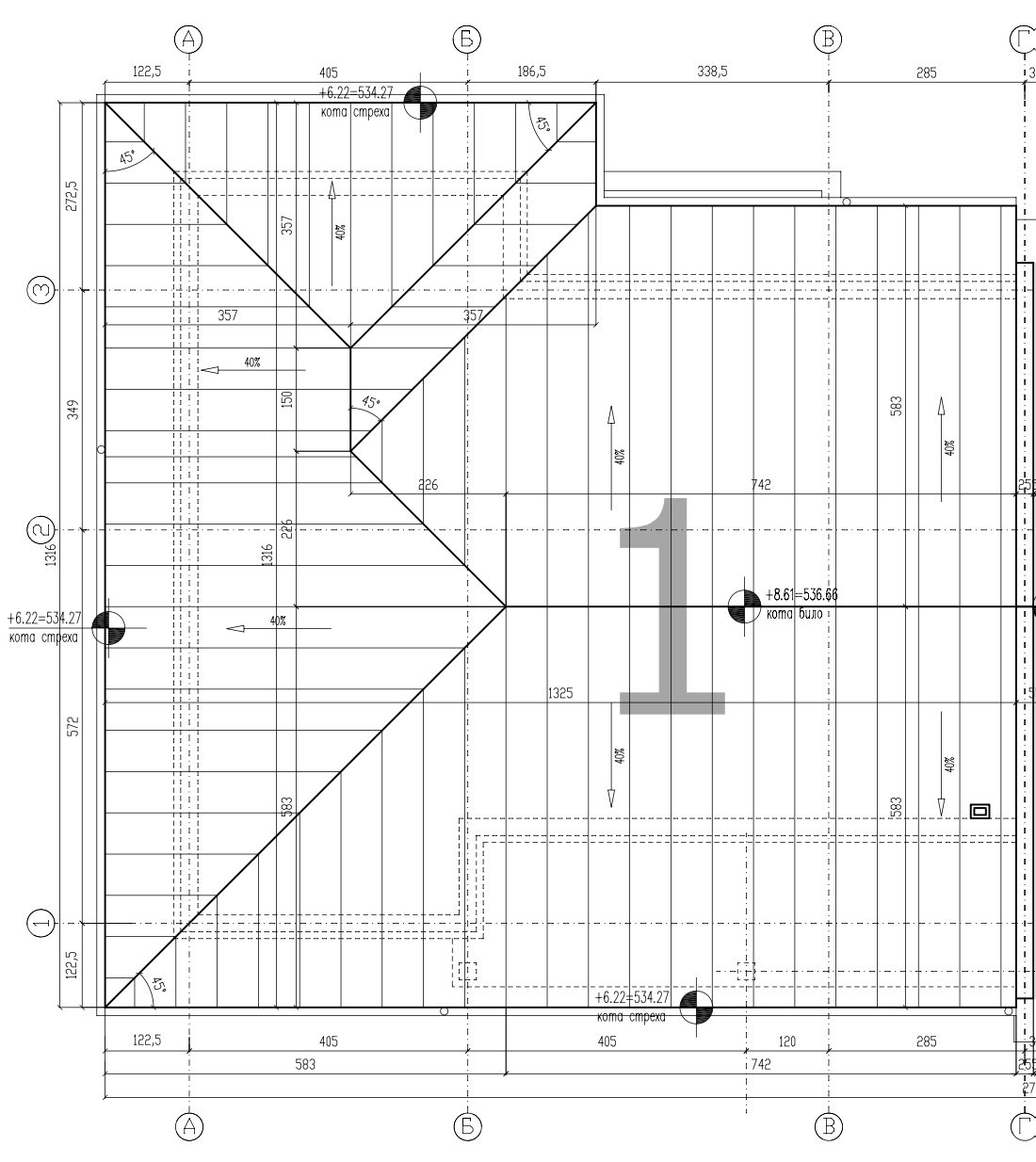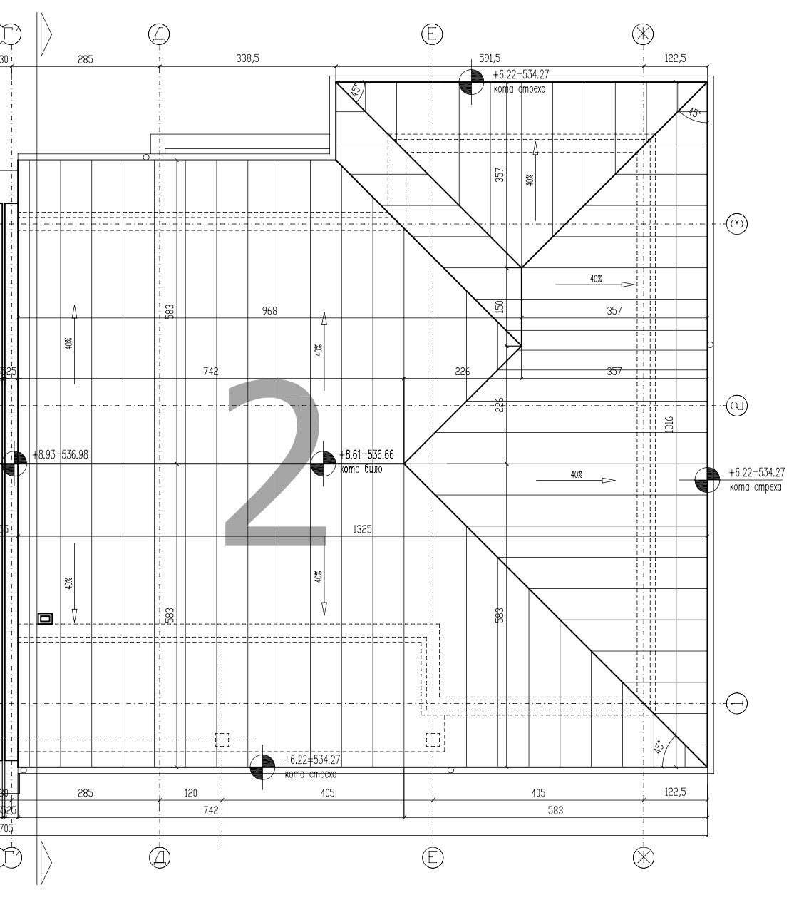 • Gable roof with wooden structure and Bramak tile covering.