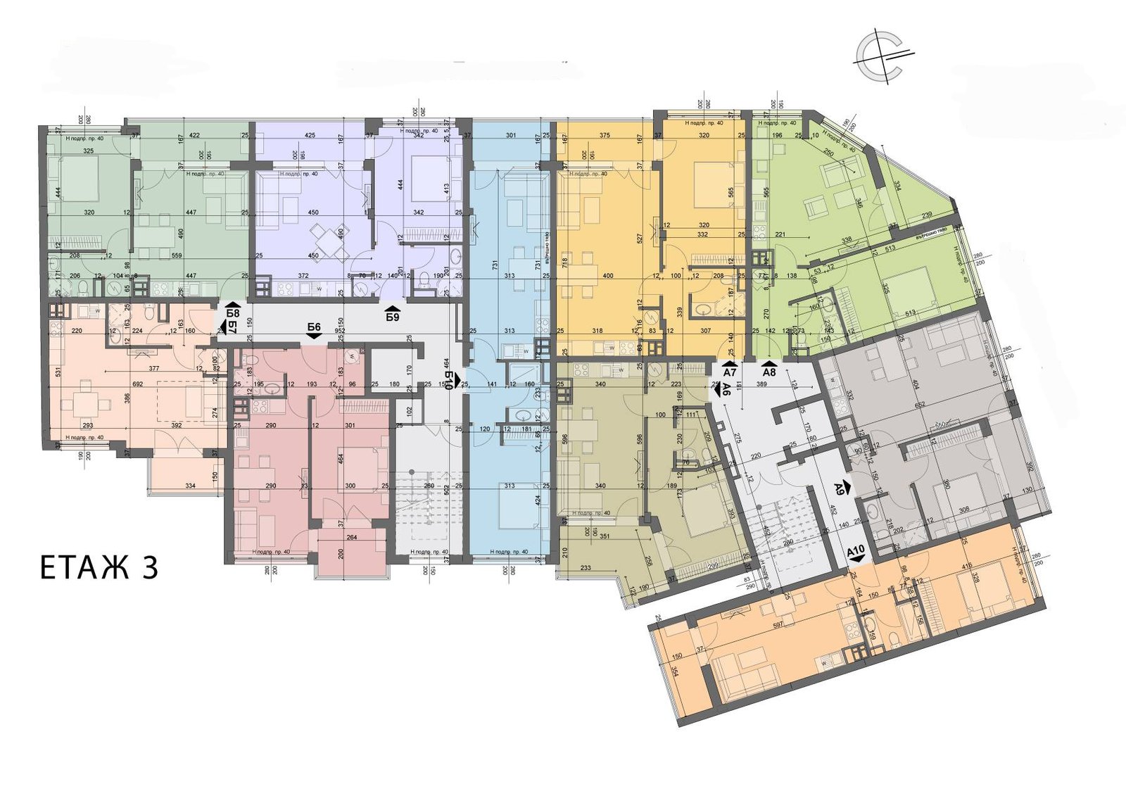 - Total housing: 61 apartments (from 38 to 153 sq m) – 2-bedroom, 3-bedroom and 4-bedroom